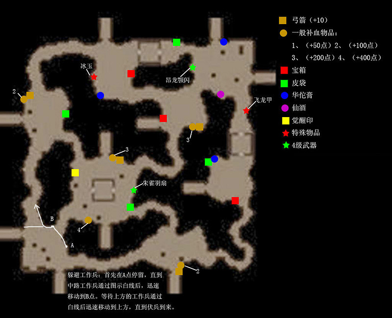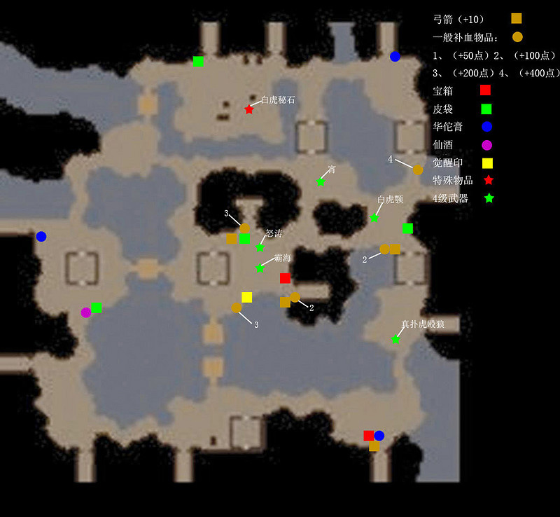 | 虎群 | 用周瑜闯东门时,会有虎群出现(无敌)一定时间后消失,用孙策就要杀掉虎使,(不要管虎群)才能继续前进。 |
