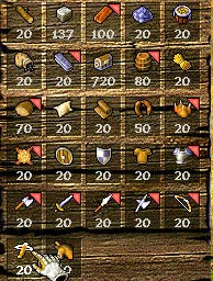然后点击第6排第1个物品(弩)就能给储藏屋的每样东西都加10,或者点击第6排第2个物品(马)可以马上完成当前任务。