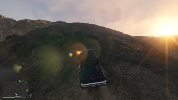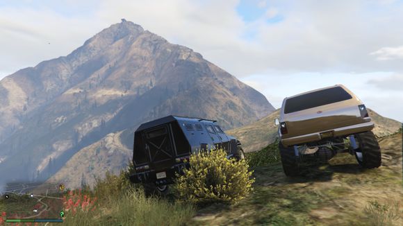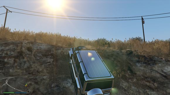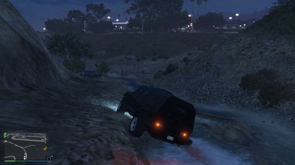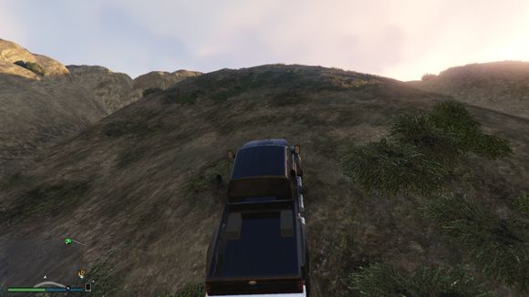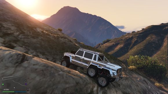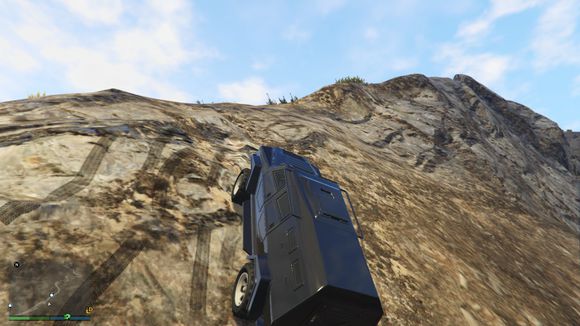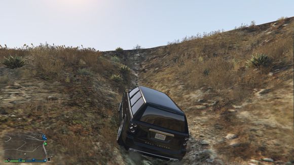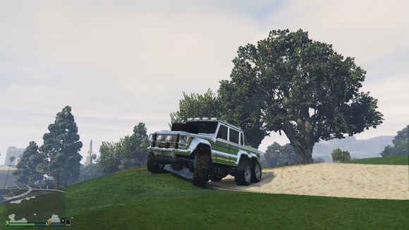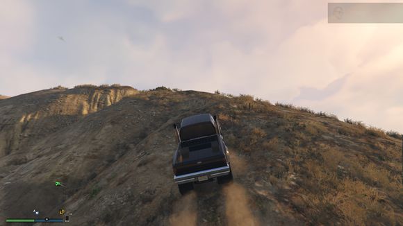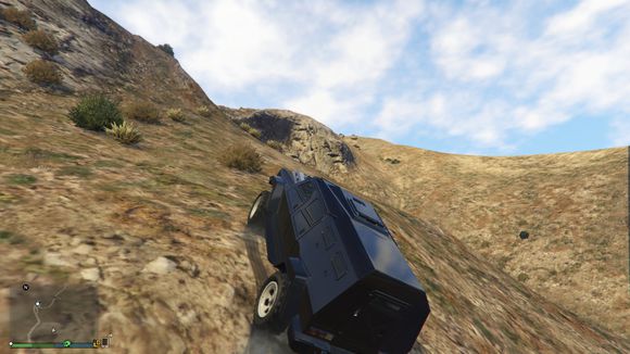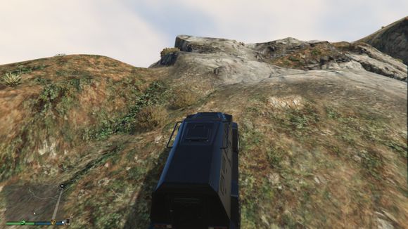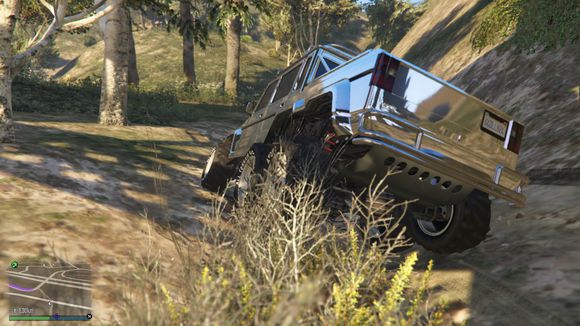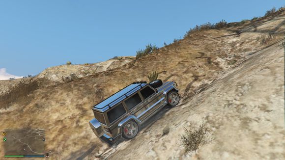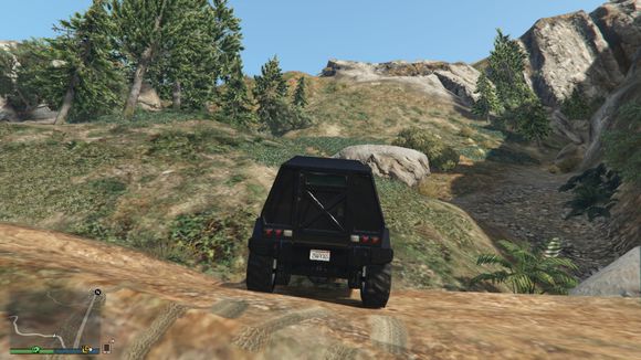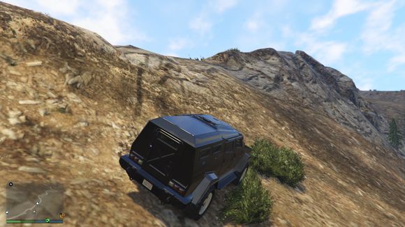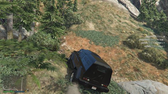 出来后看见一个小山头。于是楼主开始手痒痒。嘻嘻。仰头冲了上去。这里要说一下。由于这辆车引擎在前后轴中间属于中置引擎。整车重心偏后部。。爬这种比较陡的地方的时候。稍带一点速度按住shift键让车头贴住地面。才能发挥出它最大的能力