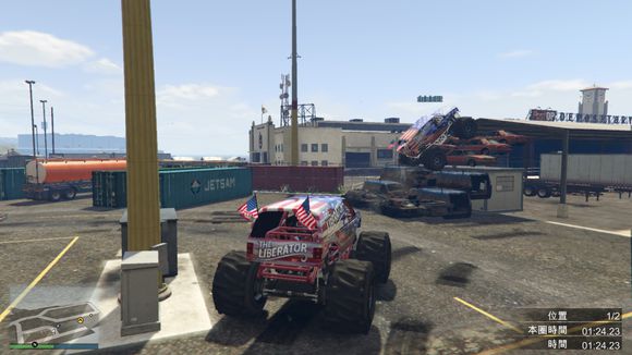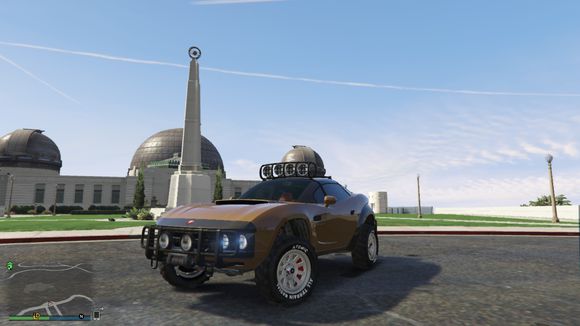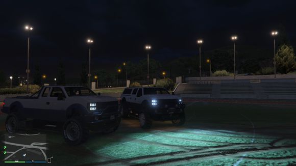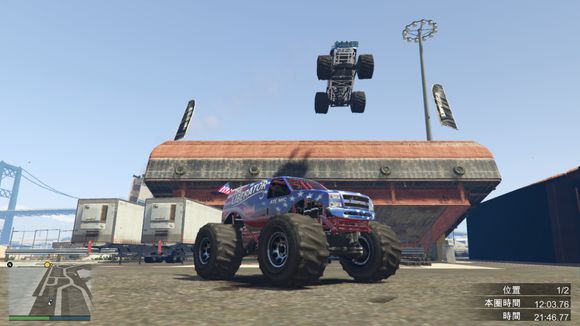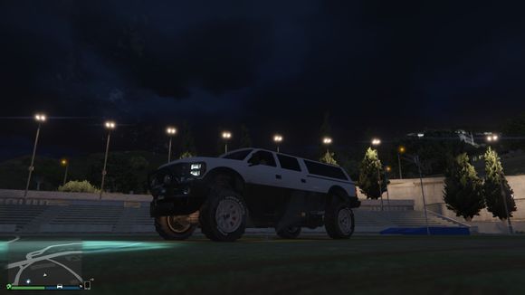 既然已经到了体育场。那就留个念想再走吧。楼主很喜欢这辆车。这辆车是楼主玩GTA5第一辆放进车库的越野车。一直留到现在。为了这次评测才开出来。它跑的很开心呢