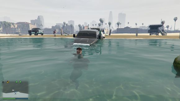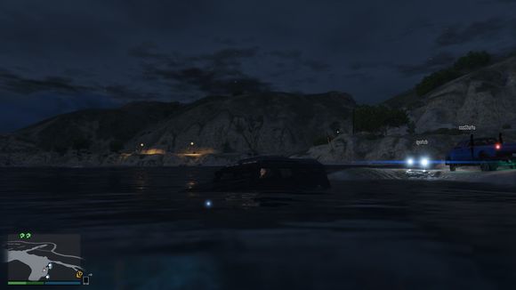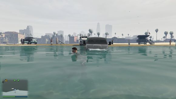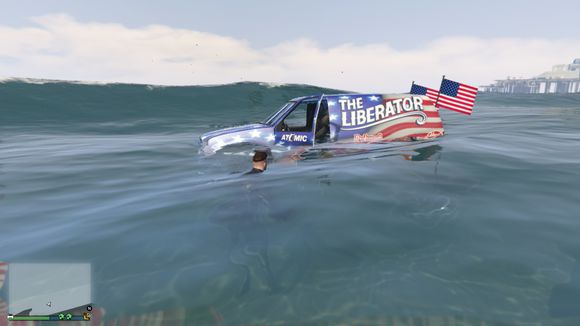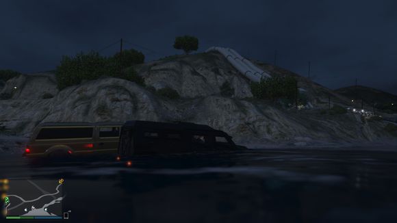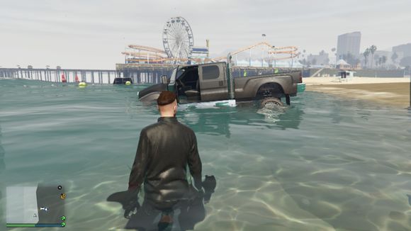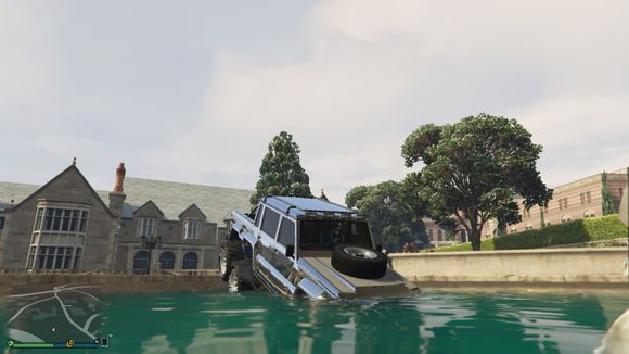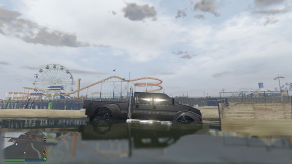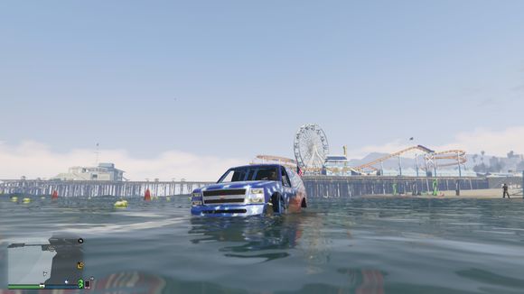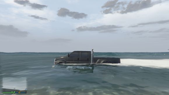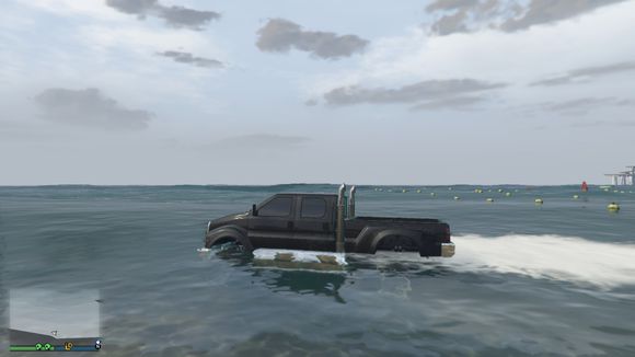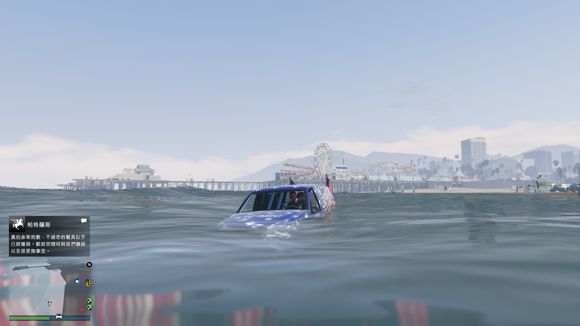 车开下水了。我还故意停了一下。这个深度没有什么问题。叛乱分子可以承受的了