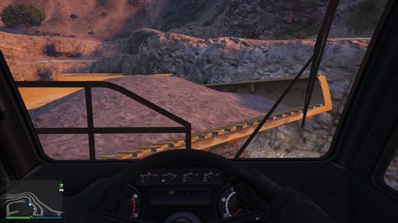 这车里来看呢。防滚架起到了很好的保护作用。难怪这车爬山翻车神马的都跟无所谓一样。只是玻璃碎了。不过话说回来。现实中的大脚是没有玻璃的