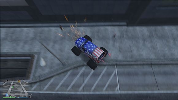 加速跃起。俯冲下去。。上面有人说楼主开了无敌。这里楼主声明。楼主没有车辆无敌哦。绝对是自然碰撞结果,没有任何辅助在中作祟