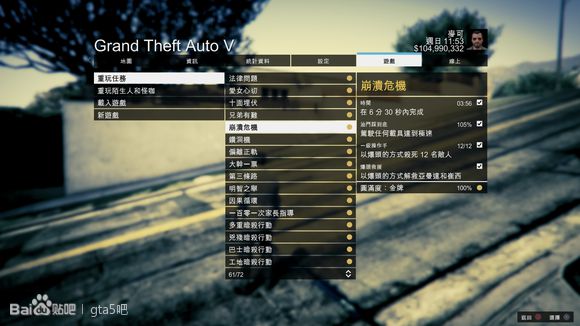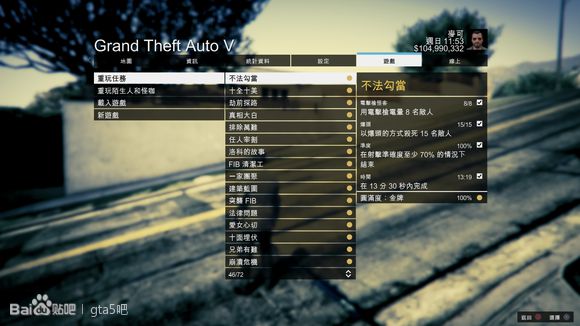 (这不是正文)好了本屌昨天正式玩烂GTA5 把最后的所有的主线/支线任务全金牌了 下一个目标是OL的全奖杯