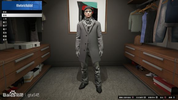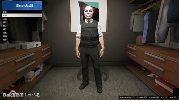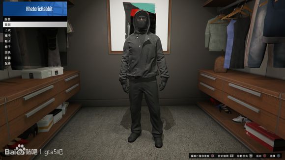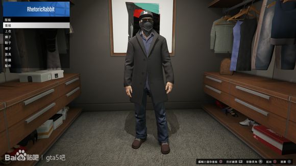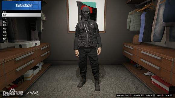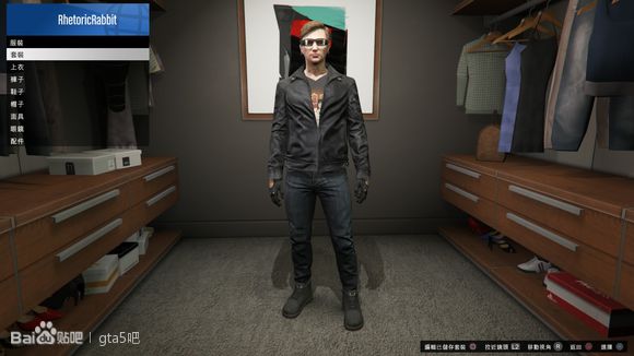 1.进入任意服装店购买黑色宽边墨镜、黑色战斗护衣、潜行工作背心、黑色抢劫任务长裤、黑色宽松短靴