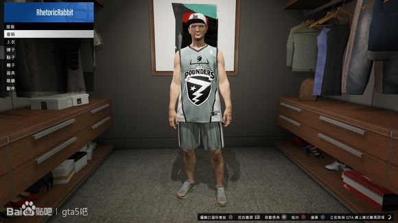 1.进入任意服装店购买灰色洛圣都平檐帽、捣蛋鬼队篮球背心、灰色双色运动短裤、银色跑鞋并保存