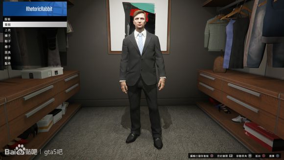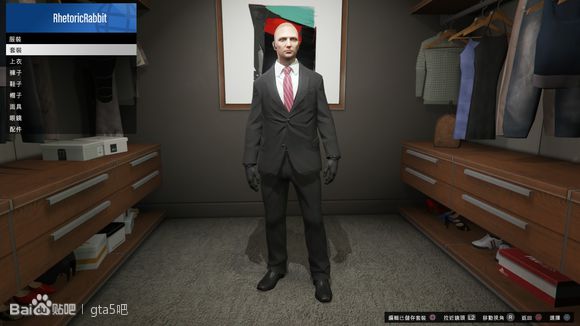 1.进入任意服装店购买岩灰色西装外套、白色衬衫、红色条纹领带、黑色皮手套、黑色便鞋并保存