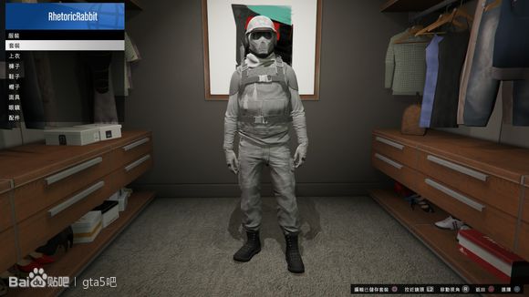1.进入任意服装店购买灰色防弹头盔、灰色军用上衣、灰色围巾、灰色军用手套、灰色军用裤子、黑色战术靴并保存