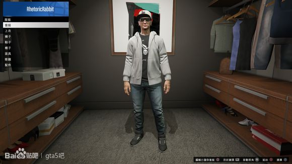 1.进入任意服装店购买灰色洛圣都平檐帽、黑色秋季墨镜、白金多角环形耳环(双耳)、白金骷髅项链、灰色连帽外衣、蓝色褪色贴腿裤、艾里斯黑色休闲鞋并保存