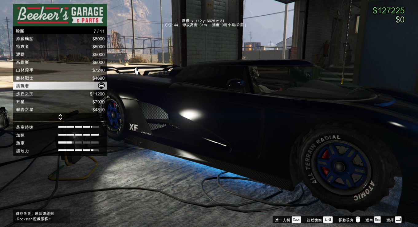 请各位看车的上方,有个显示速度的。起速特别慢,这是我装了轮胎——拉力大师,顾名思义吧,反正抓地力特别好,可相对的我速度慢了不少。