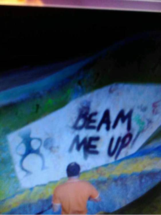 再看图,UFO下方是一道光束,,还有UFO底部打开的口。所以我基本可以确定beam me up(牵引到UFO中)就是进入UFO的方法