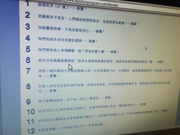 用网友的原话来说就是册子的标题就已经呼应了12条教义的第一条,整本册子是等于补充扩充说明的,疑点有:真理之湖,湖边的苹果树,湖边的钓鱼人,湖底的蛋,身无分文,与9个女人啪啪啪过