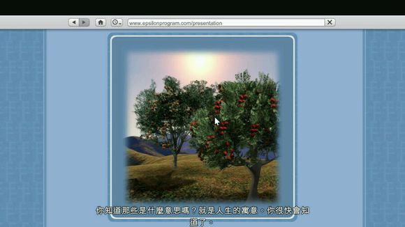 然后就是埃普西隆邪教了,之前有登陆的网站,看到了如下几张图:鹰和苹果树,图中可能暗示了苹果所在地点,照图来看,苹果树在山上或者是起伏不平的地面上,找到这个地点,真理之湖也不难发现了……