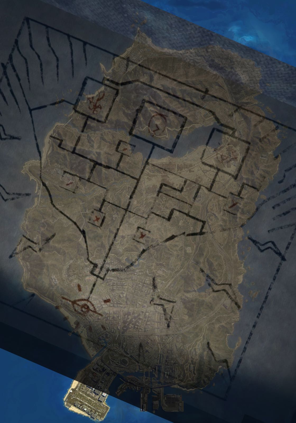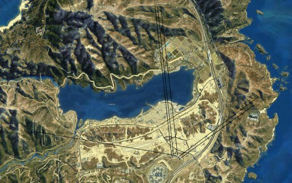 这样的重合方式巧合太多,(角度问题,两图略不同)蛋与阿拉莫海重合了,这可能印证了真理之湖的存在,一个x与军事基地重合,一个x与j山重合,一个x与好莱坞山重合,一个x与矿洞重合。