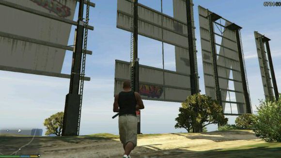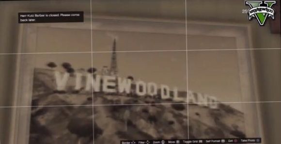 楼主刚刚在YouTube上看到的:如图一这是理发店挂的一张照片,照片里是游戏里好莱坞的照片,但是仔细看,照片里多了“LAND”这个单词。如图三,这是游戏里好莱坞的样子。
