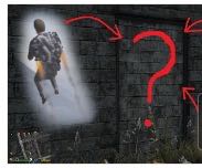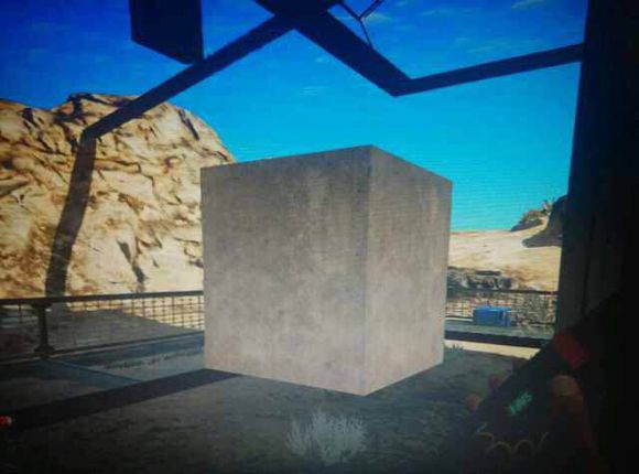 打问号的那扇“门”也很有趣。门的地点如图1,2。玩家向这扇门射击时,门并不会留下任何弹孔,就算朝着门丢粘弹,粘弹也会消失,就像穿过了门一样。当玩家靠近门时,人物的建模或者枪械的建模都会穿过这扇门(同样外网发现)