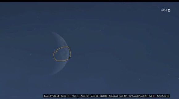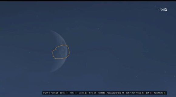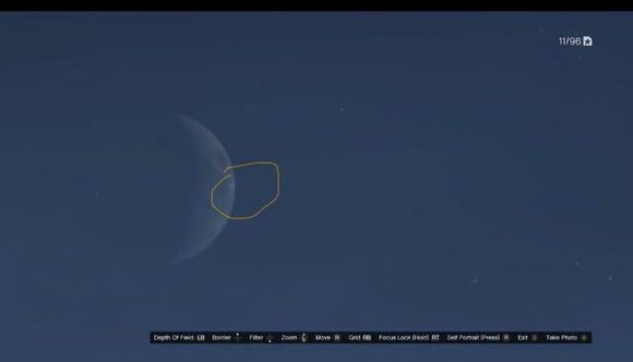 大 神发送了外国玩家找到了第四和第五个ufo的资料(详情参考1400楼和1407楼)晚上用手机拍月亮,会看到两个光斑穿过月亮,并且亮度忽明忽暗,运动 速度异常地快,运动轨迹也与星星不同我们一致地认为这就是UFO,也就是说r星在暗示shoot for the stars就是要射击UFO,就是高速移动的光斑(如图1,2,3,4)