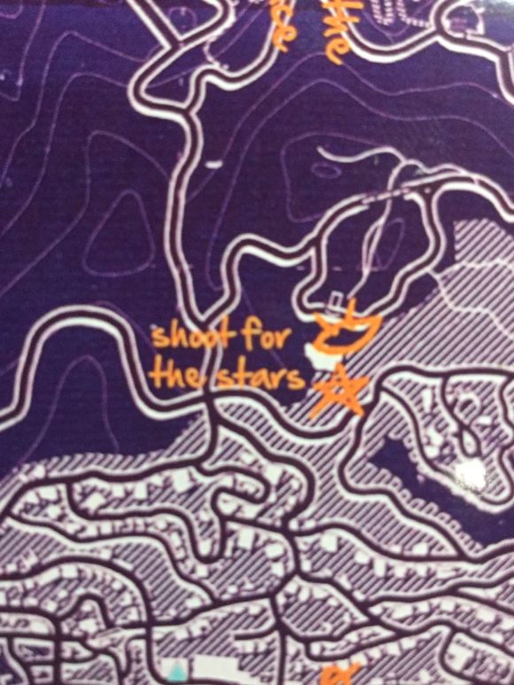 疑点四:shoot for the stars和这行字下的星星符号和ufo符号。还有蓝图中频繁出现的ufo图标了,出现次数多达8次,而玩家目前已知的就4个ufo,而且c山的,军事基地的,海底的均未被在蓝图中标出,也就是说蓝图中的ufo我们已知一个。
