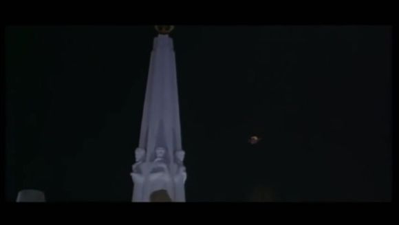 然后就是这个电影,一个穿着飞行背包的的人,降落在洛杉矶的天文台上