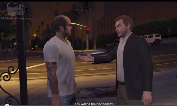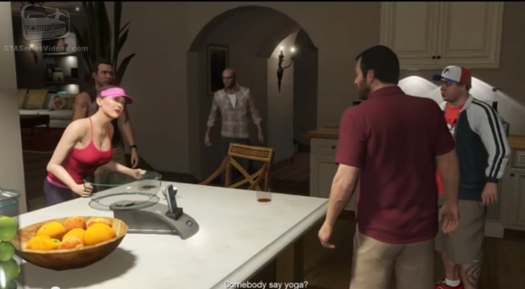 看 似普普通通的一句话,却是9年后两个至交好友的见面语。Amanda抱怨丈夫和孩子打搅了自己的瑜伽课,这时教练Fambien以“Did someone say Yoga?”的谦和声音登场。而接着以相同方式登场的确是Trevor。这个重逢实在太戏剧性了,如果说Trevor在Sandy Shore清剿The Lost Mc反应他暴力血腥的倾向,那么这次在Los Santos登场就体现他性格的另一面-霸气下的幽默。
