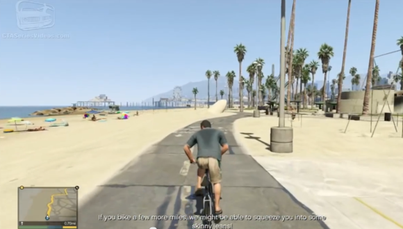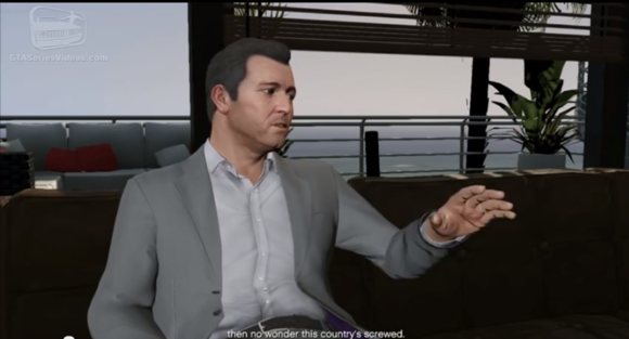 接着上面的Michael又继续吐槽美国的青年。美国青年和我们一样都随着潮流走,谁跟紧队伍谁就很酷。美国青年觉得吸大麻、打飞机和玩电子游戏很酷,那么他们就确立这是好的标准。这也是R星吐槽美国社会的一个亮点。