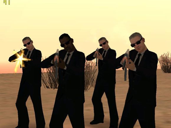 通常4人一组乘坐FBI Rancher。由于FBI Rancher的性能很好,所以建议不要和他们玩持久战(什么?你开的坦克?当我没说)。