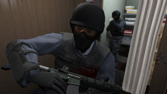 他们通常四人一组坐着Enforcer过来,当玩家停止在某一个地方(区域)时,直升机上会有SWAT队员空降下来,然而。。。直升机上一个人也没有