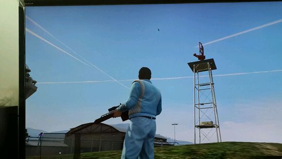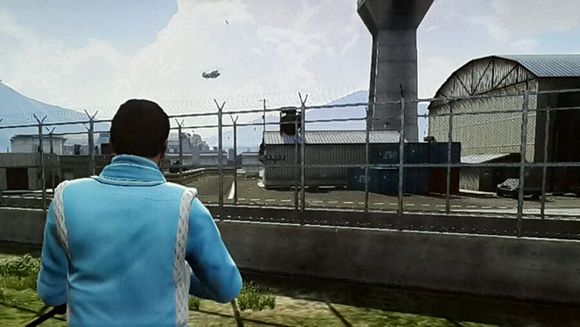 躲士兵的时候我上了房顶,突然看见我瞄准的地方有一架运兵直升机,平常也有,只是没注意