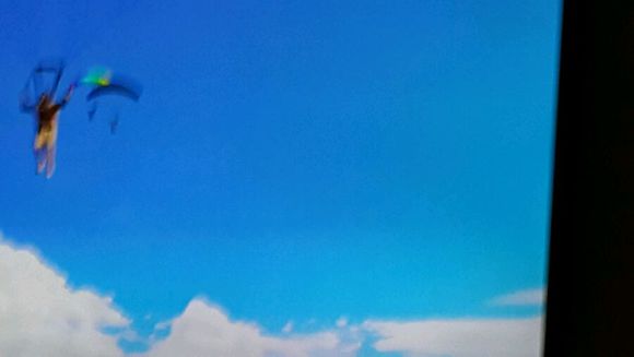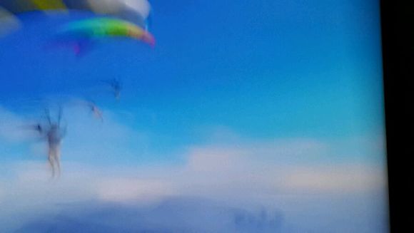 5.飞机接近,出现“嚎叫”声,发动机停止运转。人带降落伞接近。降落伞消失,人的下落位置被偏移出飞碟范围。不过依然有人成功的登上了它。