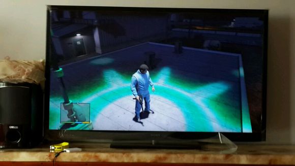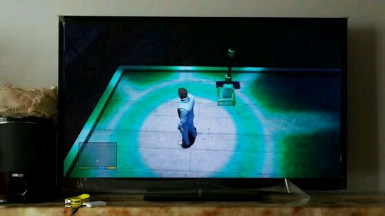 这是三点中出现的升降梯,由于光太强,可能看不太清楚到底是蓝还是绿,把之前的蓝斑都连起来了