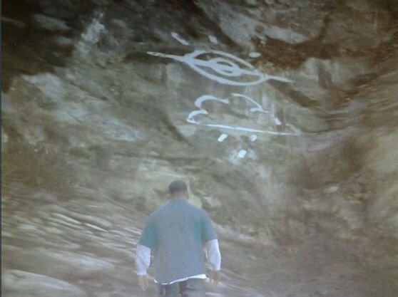 平 时这一堆像眼睛如果按照图上的位置经过中心投影是投不到下面仓库周围的,它会投到更远的地方,但是在两点中它的位置就发生了改变,它的位置由原先的集聚相 对的分散了,它原先像眼睛一样的东西之间的距离变大了,而且朝向了地面,在凌晨三点的时候它们之间开启了重力升降梯,而且基地飞碟的下发形状刚好是那样多 角的圆形,所以才能在三点的时候看到之前环绕仓库的蓝斑被重力升降梯连在了边上
