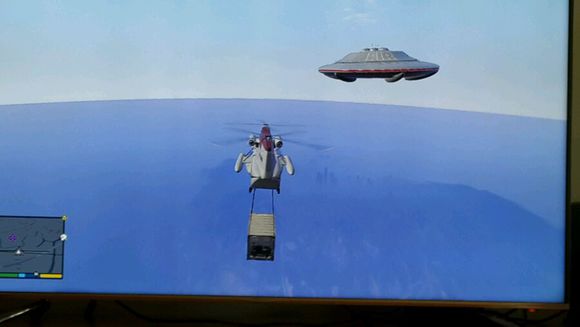 我刚刚突发奇想,在任务中可不可以见到UFO,于是我重玩了一下不法勾当,毕竟别的有直升机的任务不多,突然发现任务里也可以看到ufo