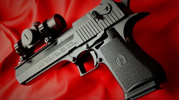 沙 漠之鹰,于1980年由MRI发布;原型枪则在1981年完成;而最终定型则是在以色列军事工业公司(IMI)。在经过数以千计的射击试验之后,第一把具 有完全功能的0.357口径沙漠之鹰终于面世。一出现,这款0.357就成为了收藏家和枪械爱好者疯狂追逐的对象。在1986年一年内,MRI特别生产了 1000把珍藏版0.357沙漠之鹰;包括100把金版、400把银版、500把铜版,均标号为0.357。每把珍藏版的0.357沙漠之鹰都由一个桃木 盒包装。