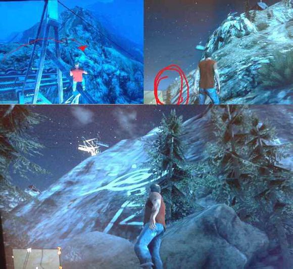 疑 点3就是c山西侧的大麻图案(大麻图案已破解)和ufo图案了,ufo图案到底和大麻有什么关系,这个答案等到游戏时间一星期后应该可以揭晓,各位注意蓝 图,这个符号是c山唯一出现的,但是我们抛开蓝图,个人认为,真相不在c山,还有“结束你的故事再回到这里”这句话只不过是给完成度未100%的玩家看 的,只是提示这里有ufo。但是缆车站的图还是疑点重重。