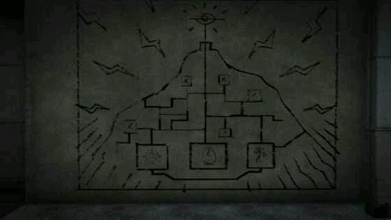 对于C山上的图案我有两种看法1:全能之眼 2:飞碟 。如果是全能之眼的话,我觉得全能之眼是看着某个地方,可能在暗示什么。(盗张图用一下,不好意思)