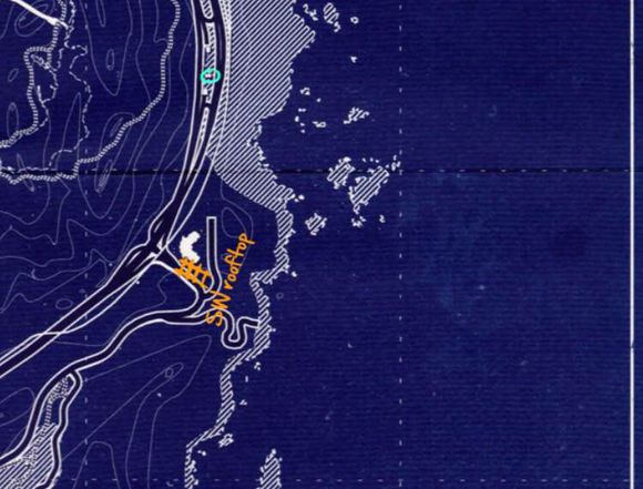 好好研究下蓝图,先从最可疑的橘色字开始,rooftop(屋顶)和一个梯子,在高速公路傍边