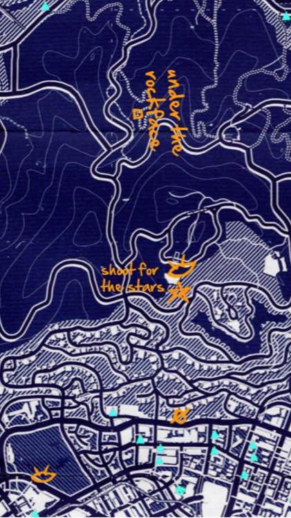最后一个疑点:shoot for the stars和这行字下的星星符号和ufo符号。还有蓝图中频繁出现的ufo图标了,出现次数多达8次,而玩家目前已知的就4个ufo,而且c山的,军事基地的,海底的均未被在蓝图中标出,也就是说蓝图中的ufo我们已知一个