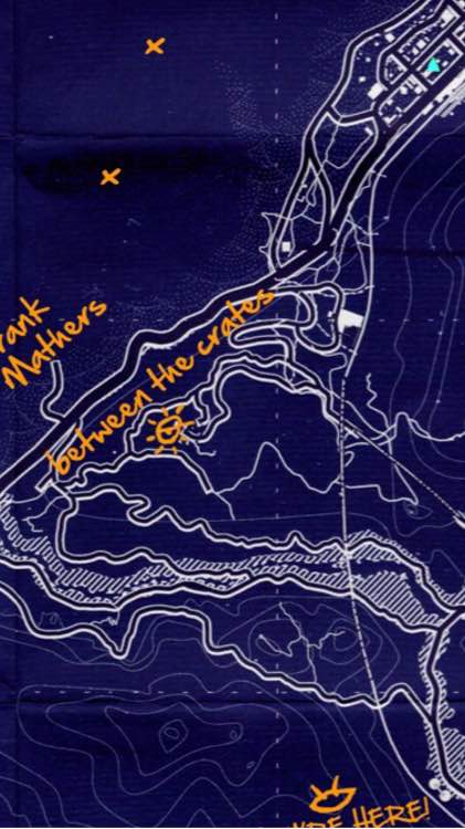 between the crates(在条板箱之间)这些文字可能是星在暗示线索,在佩利托湾旁