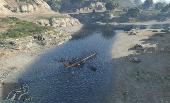 想玩特技超超低空飞行来着,结果没控制好,飞机擦了一下水,引擎严重故障,不知道能不能坚持到葡萄籽机场