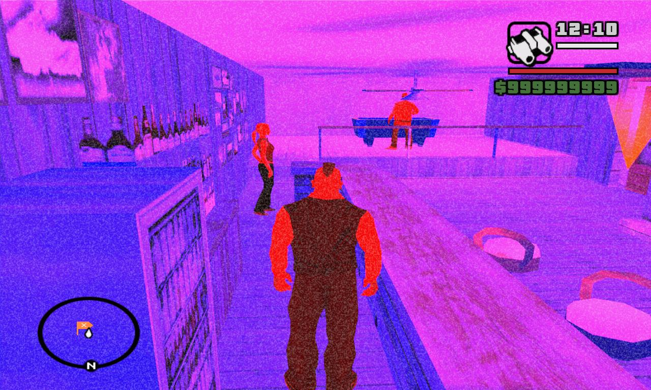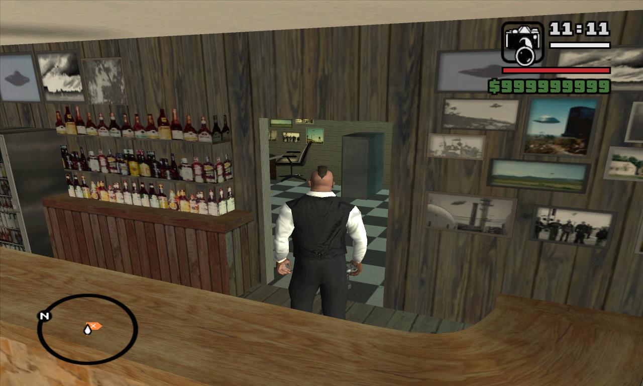 这 家用UFO当招牌的酒吧是在反讽现实生活中的内华达州雷切尔的Lil* Ale Inn.这家酒吧最里面的办公室里还有一张神秘的地图,这张天书一样的地图上用许多指针标出了San Andreas的一些特定的地点,在Toreno的小茅屋里也能找到这张图。如果你去调查这些地方你会发现许多地点都和美国的历史有关。例如在Las Venturas的体育馆你会看到有关60年代许多嬉皮士受到歧视而被杀的内容。