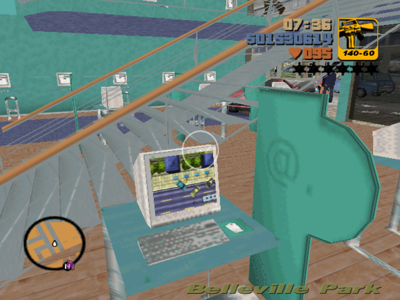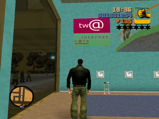 6.斯唐顿的一家网吧内的电脑上显示有GTA1和GTA2的画面。