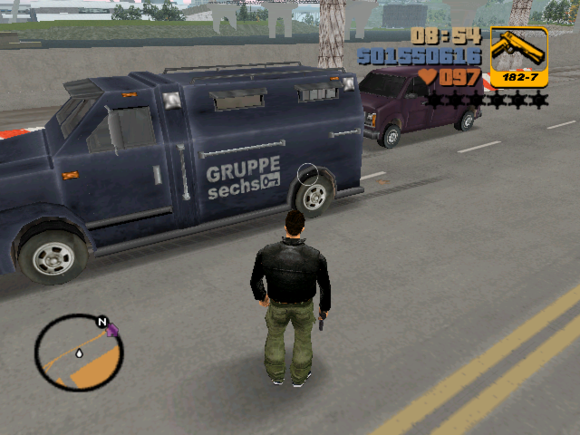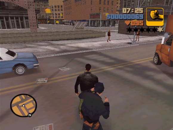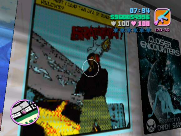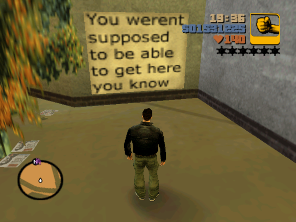 GTA3中还有一个彩蛋忘了发了,建筑工地附近有个女行人手上拿着的文件封面上画着一个很重口味的东西.......