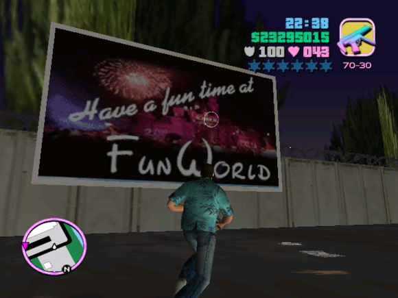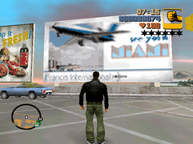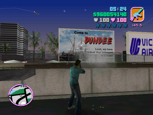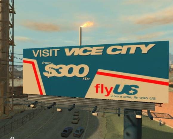 12.斯唐顿的一个路口上有一个机场的广告牌,上面告示了“如果你不喜欢这里,请去罪恶都市”这就说明了R星当时已经把下一代游戏的地点拟定好了。(图中是迈阿密,但也就是指罪都了)