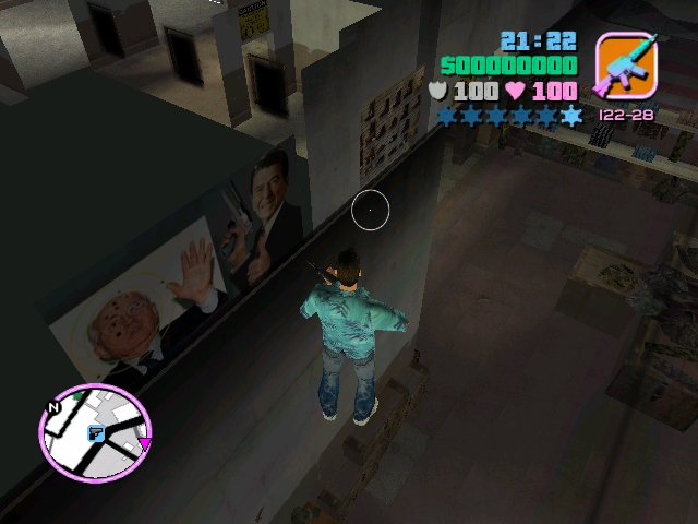1.在市中心武器店的墙上方(通过修改器到达)可以看见80年代冷战结束时的美国总统罗纳德·里根和秘书长戈尔巴乔夫。