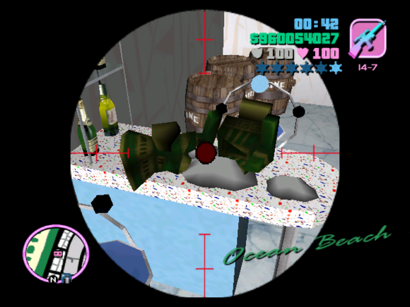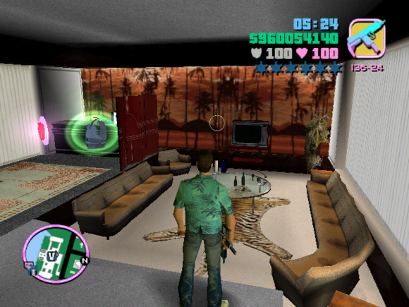 18.东岛大洋海滩南部的一栋公寓里面看起来经历过了一场杀戮,这其实是影射了《疤面煞星》电影的一个片段。