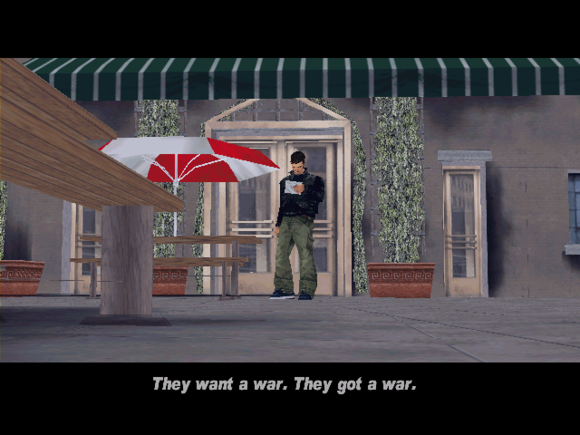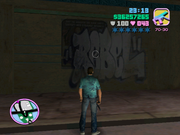 53.洛圣都的一堵墙上印有GTA3和GTA VC的封面。