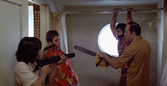 38.汤米身着劫匪装的时候,他的形象就完全是在模仿电影《弗莱迪大战杰森》里的“杰森”。