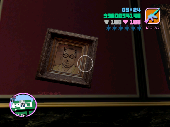 19.汤米的豪宅里面有一张迪亚兹的肖像,不过看起来似乎被涂鸦过了。