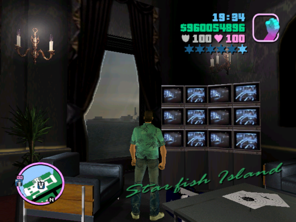 32.汤米的豪宅其实是完全搬照电影《疤面煞星》的样式,包括娱乐室、监控仪器和豪宅大厅。