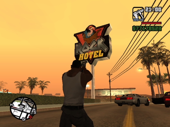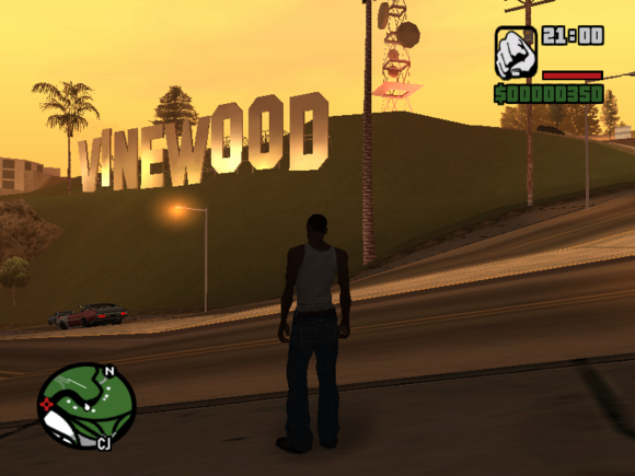 7.洛圣都附近的一座山上有“VINEWOOD”几个字的大型招牌,这个招牌影射洛杉矶的